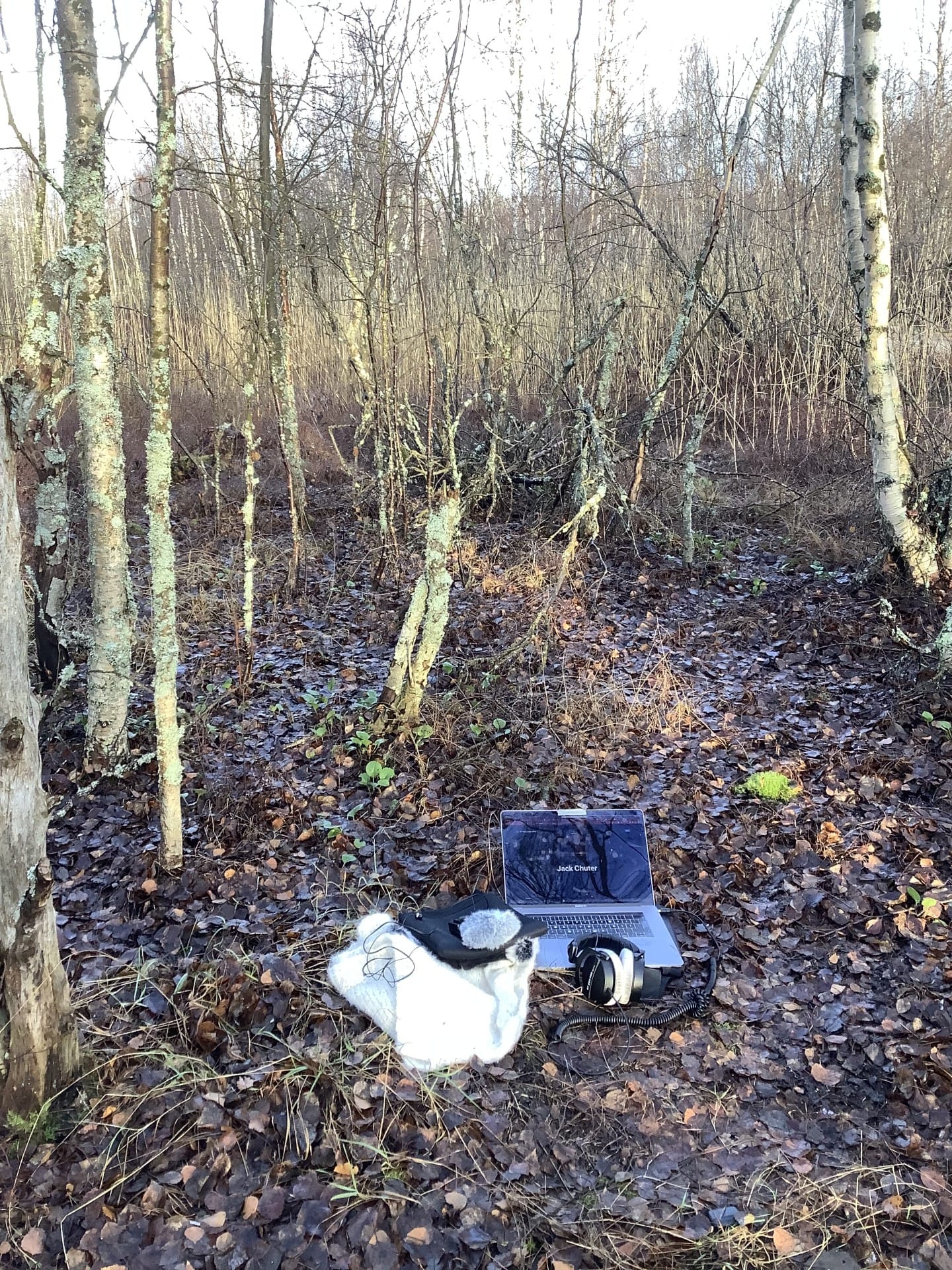 Antye was in the woods while we recorded this one! Here's a snap of her setup: